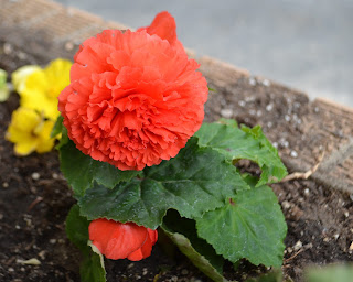 Accompanied by begonias. Why? Because begonias, that's why. Actually, just because they were there. Dad recently put them in his front planter, which he generally does every year. Mom usually had geraniums instead, but I'm not that big of a fan of geraniums because of the smell. I'm just as happy to see the begonias.
