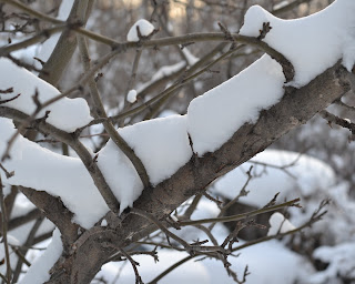 I actually made it outside with the camera Tuesday, since it was about ten degrees warmer. Unfortunately, all there was to take pictures of was snow. I know that people think of snow as pretty, but it's also pretty monotonous. Ah well, at least there are a few fresh photos to look at around here for a change.